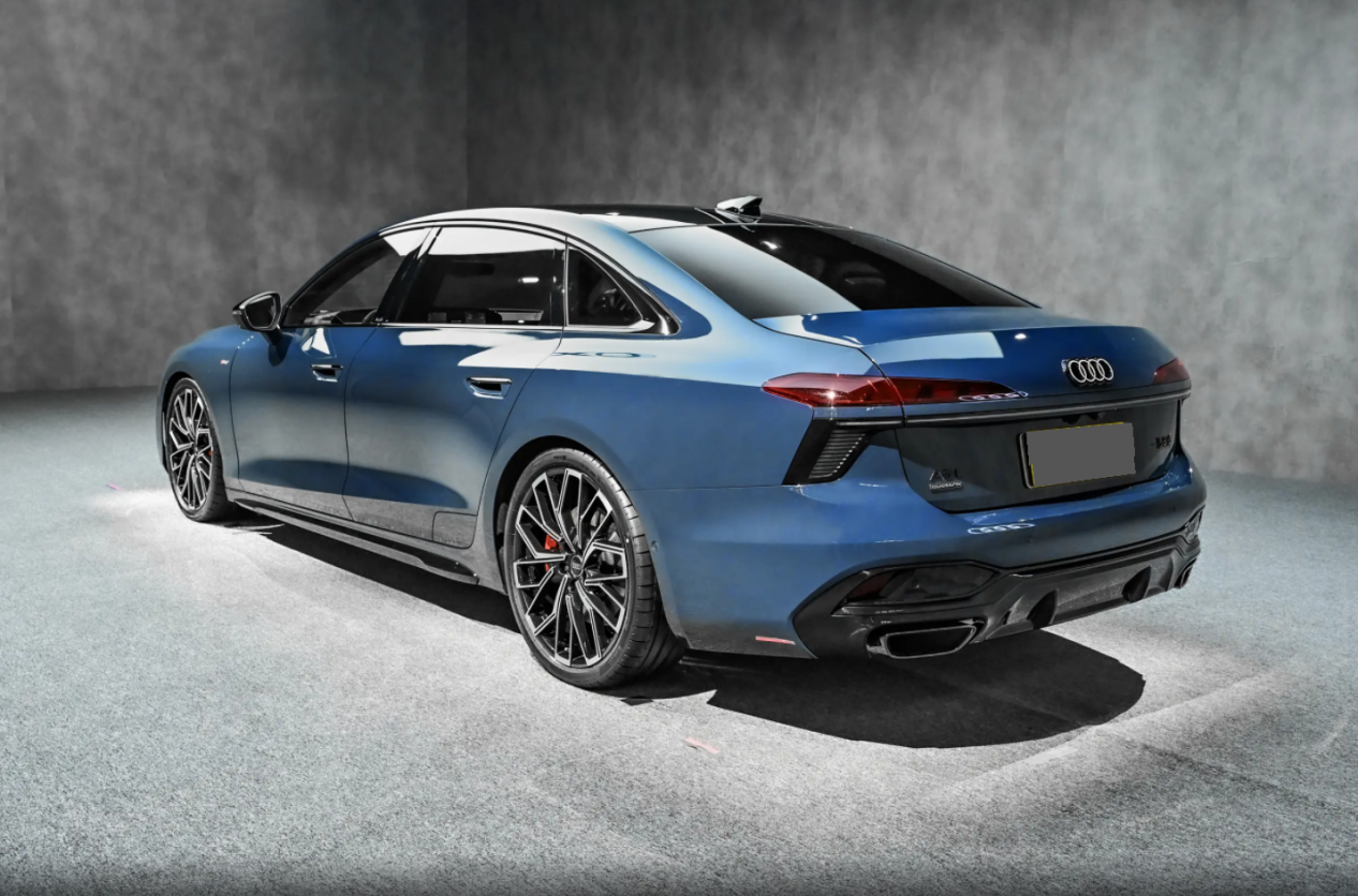 实拍图中这款为新一代奥迪A6L的顶配车型,可以看到21英寸的多辐式轮圈同样能够给用户留下深刻的印象,与上一代V字形20英寸五辐式轮毂有的一拼,当然新车高配版本配备的20英寸绽放式花瓣轮毂也同样可圈可点。另外,新一代奥迪A6L同样采用了家族最新的设计语言,整个前脸的中网格栅尺寸更大,并且完全黑化的设计加上更靠下的布局,再搭配两侧的导流槽设计,更进一步的提升了整车的运动氛围。
